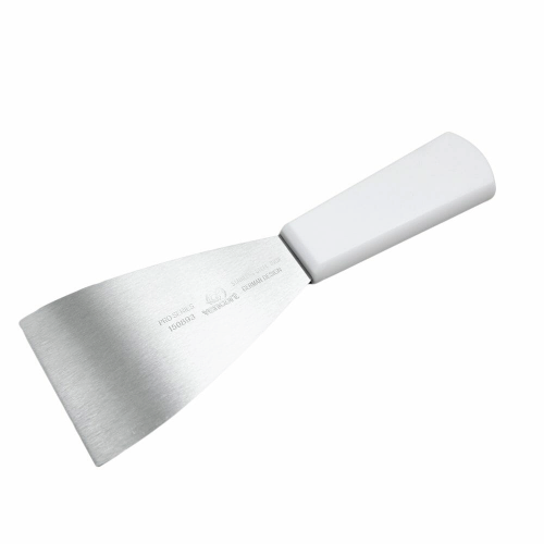 Material: Acero Inoxidable Color: Plateado Color del mango: Blanco Largo Total: 21.5 Ancho: 7.5 Incluye: 1 Espatula